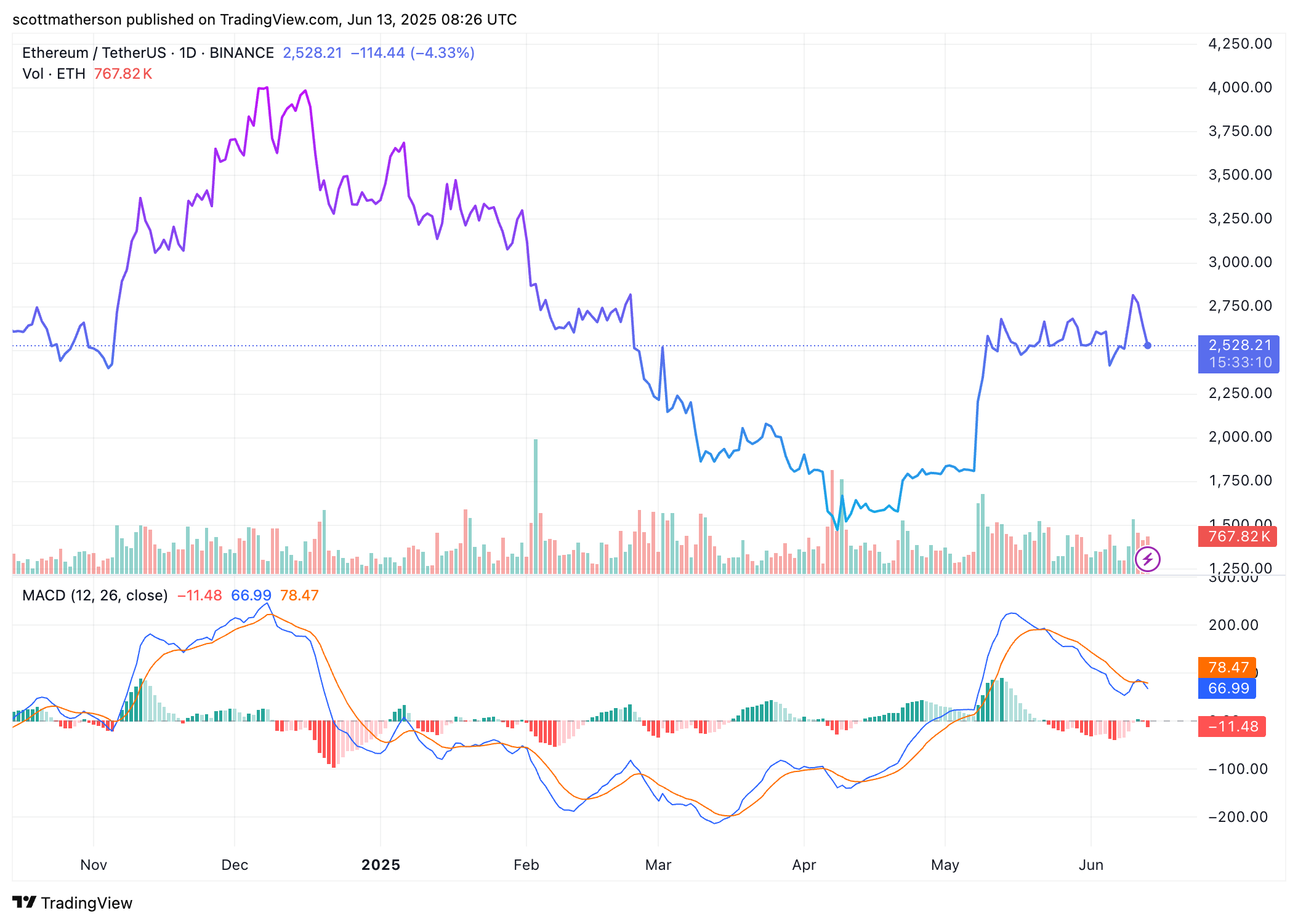 ETH Trading на уровне $2528 на 1D -диаграмме |Источник: EthusDT на TradingView.com
