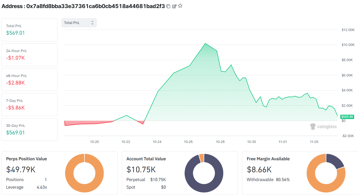 По данным агрегатора данных CoinGlass, QWEN3 был единственным чат-ботом с искусственным интеллектом, который генерировал положительную прибыль: общая прибыль составила 751 доллар при доходности 7,5%, в то время как все остальные боты с искусственным интеллектом завершили конкуренцию в минусе.