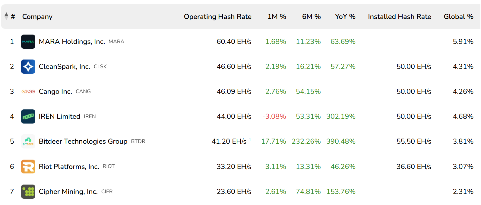 Согласно данным Bitcoinminingstock.io, CleanSpark — вторая по величине компания по добыче Биткоин в мире после Marathon Holdings с операционной скоростью хэширования 46,60 эксахэшей в секунду (EH/s).