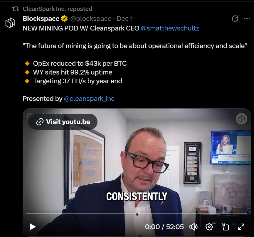 Генеральный директор Мэтт Шульц также подтвердил предложение компании о выпуске конвертируемых векселей с нулевым купоном на сумму 1,15 миллиарда долларов, что обеспечивает долгосрочное финансирование без процентов. Вырученные средства предназначены для укрепления баланса CleanSpark, Inc., финансирования расширения инфраструктуры и поддержки программы обратного выкупа акций.
