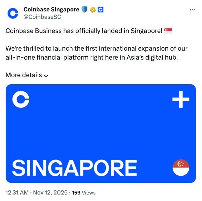 После представления Coinbase Business в июне Coinbase развернула платформу в Сингапуре в качестве своего первого международного рынка за пределами США, объявила компания в среду.