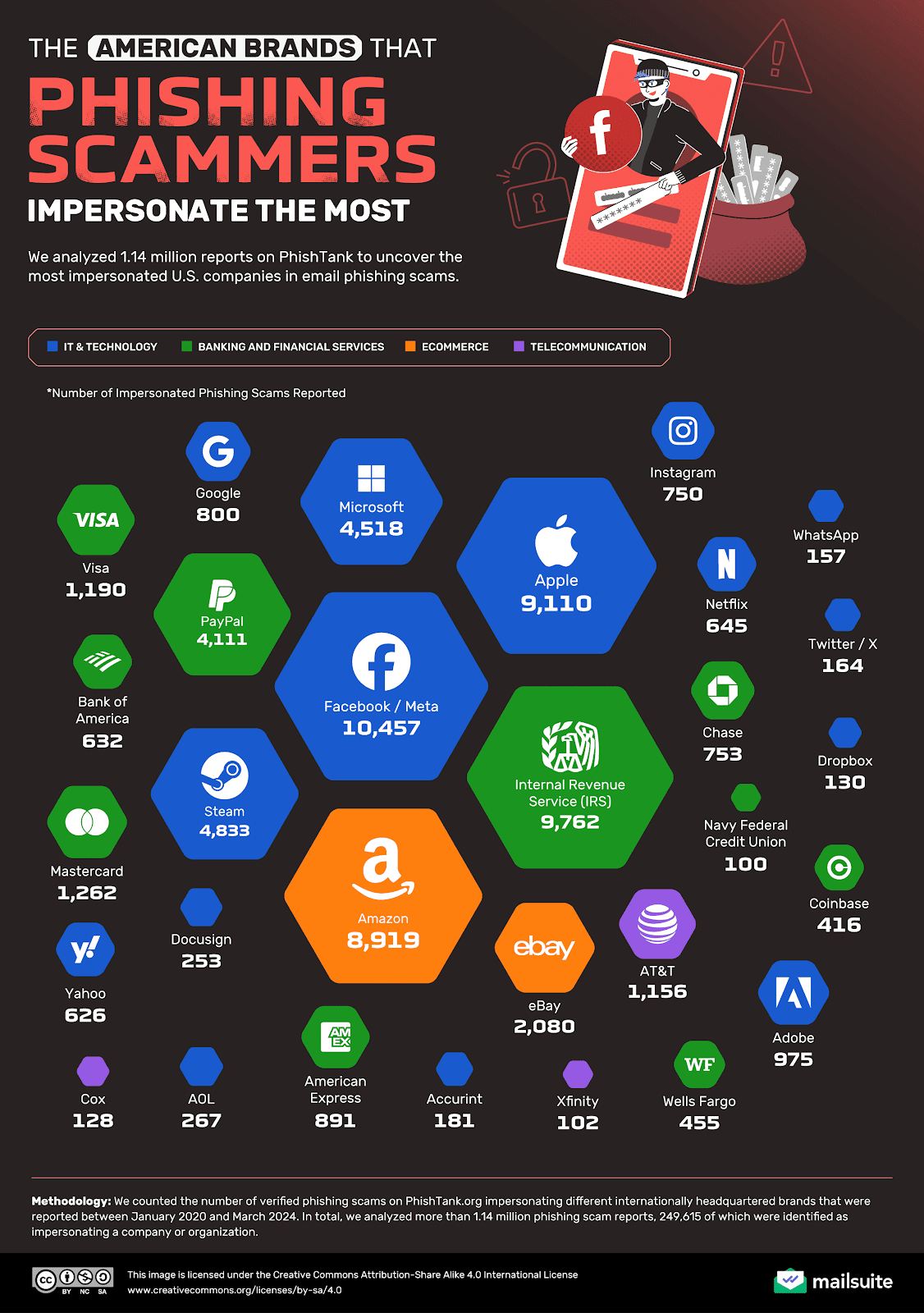 Среди всех фирм по криптовалюте в Соединенных Штатах бренд Coinbase был наиболее выдан в фишинговых атаках в 2024 году, и в соответствии с отчетом Mail -Suite, который был использован в 416 сообщенных мошенничествах.