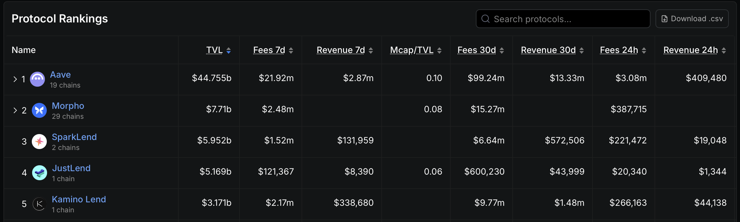 Morpho, который соответствует кредиторам и заемщикам поверх таких платформ, как AAVE и Compound, стал вторым по величине протоколом кредитования DEFI, причем общая стоимость составила около 7,7 миллиардов долларов, по данным Defillama.