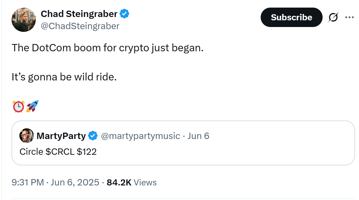 5 июня Круг, эмитент USDC (USDC) StableCoin, привлек 1,1 миллиарда долларов в своем публичном дебюте, превысив ожидания и отметив рекордную прибыль на 167% в первый день торгов.