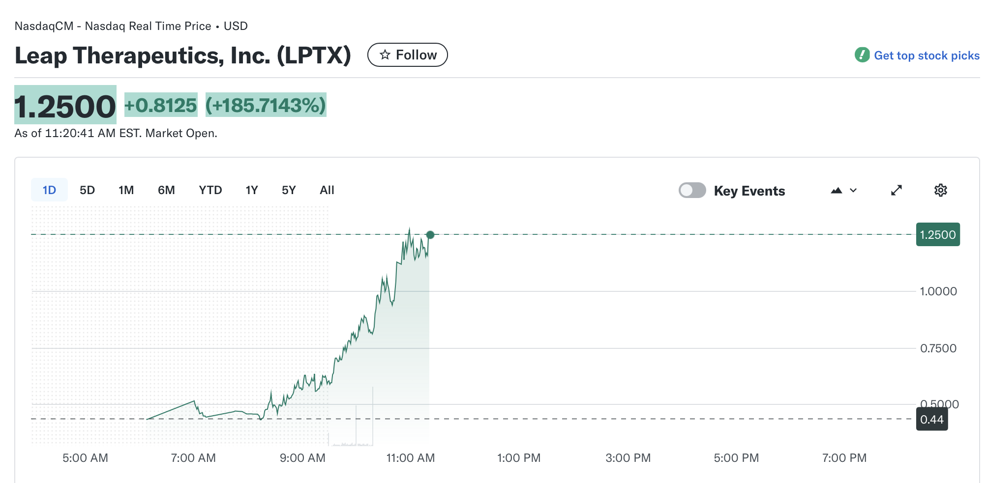 Акции Leap Therapeutics (Nasdaq: LPTX) выросли более чем на 170% в начале торгов в среду после того, как компания объявила о переходе на казначейскую стратегию криптовалюты.