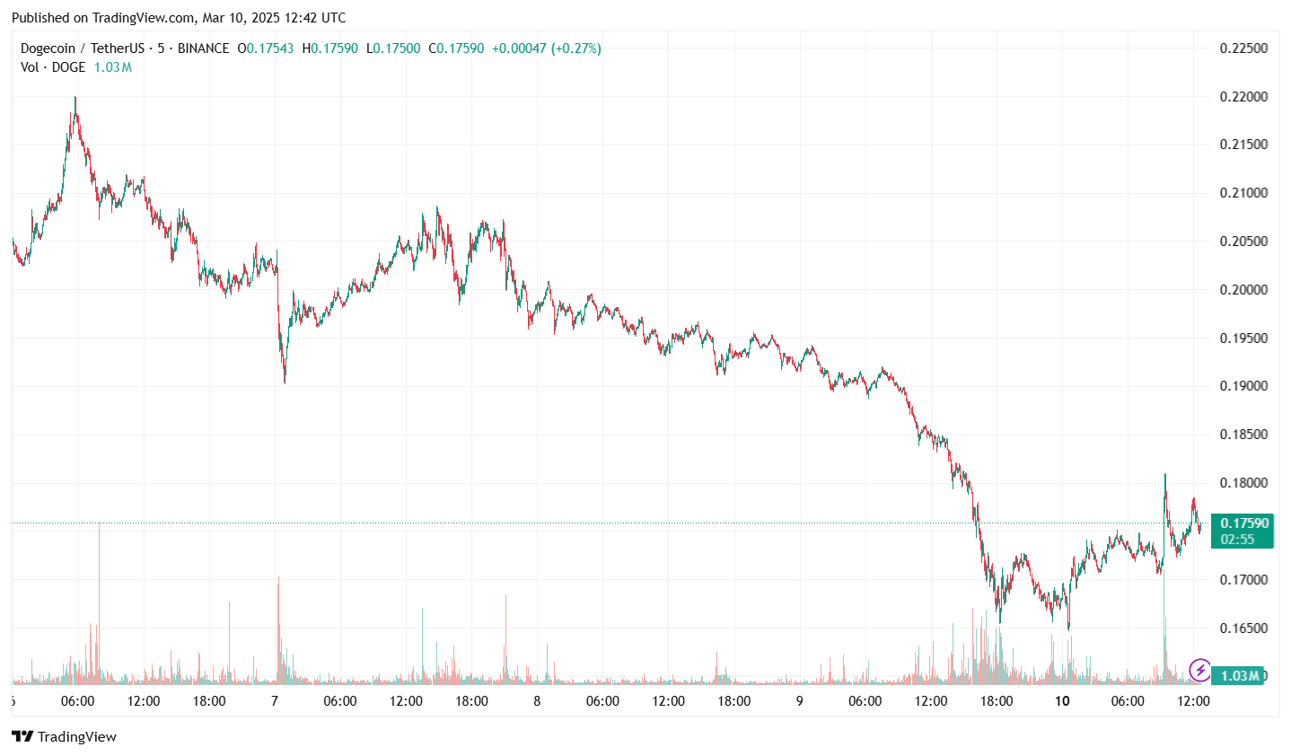 На момент написания, Dogecoin плавает около 0,176 долл. США, снизившись более чем на 20% за последние семь дней.