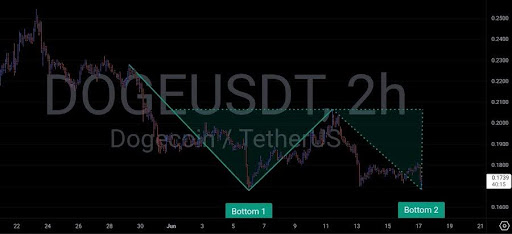 В настоящее время Dogecoin отображает характеристики двойного нижнего образования, классической реверсийной установки, которая может сигнализировать о сдвиге импульса, как отмечено криптовалютой SAT. Первое дно было установлено около отметки в 0,170 долл. США, после значительного падения цен, когда покупатели первоначально вмешались, чтобы защитить зону.