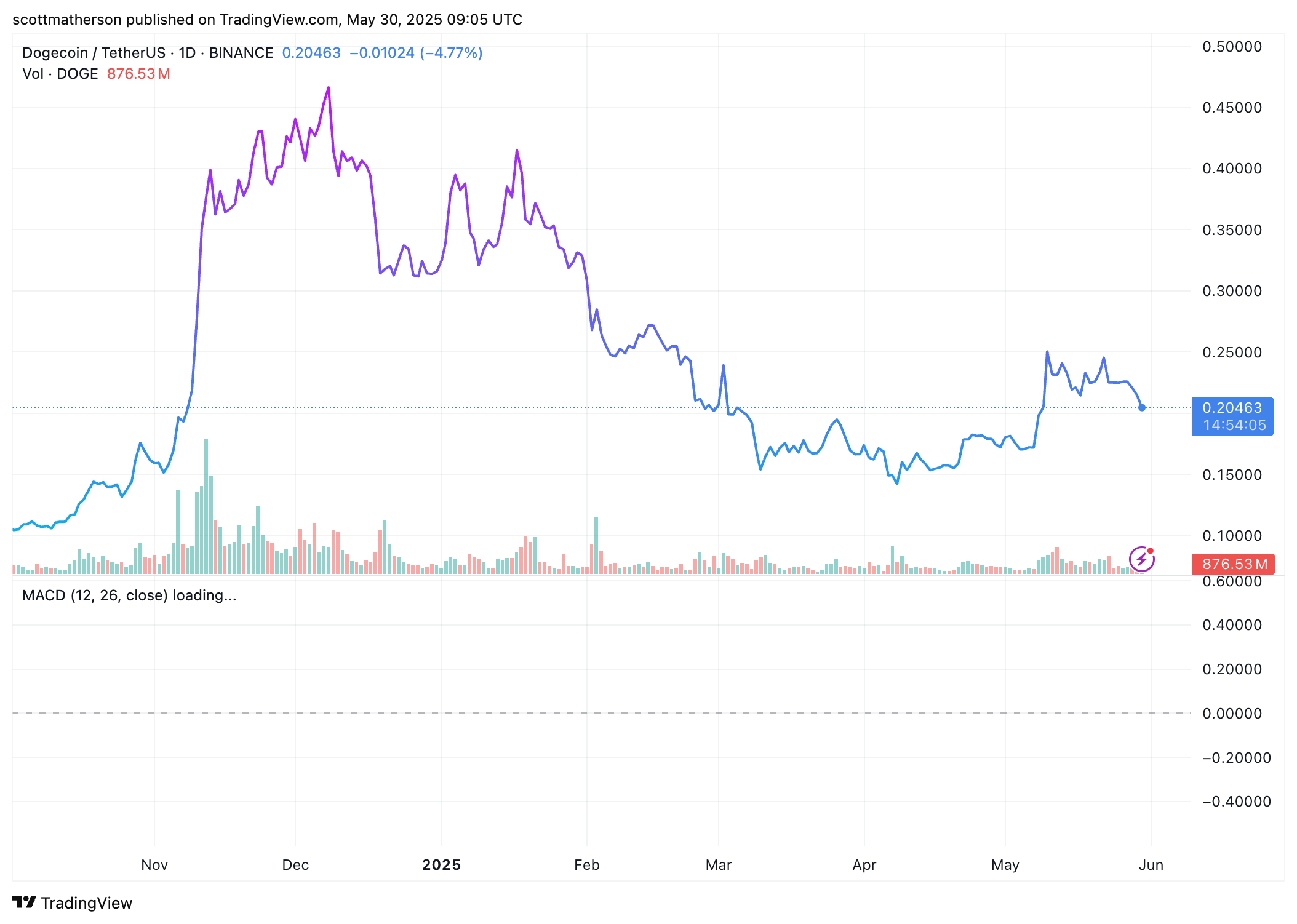 Doge Trading на уровне $0,20 на 1D -диаграмме |Источник: Dogeusdt на TradingView.com