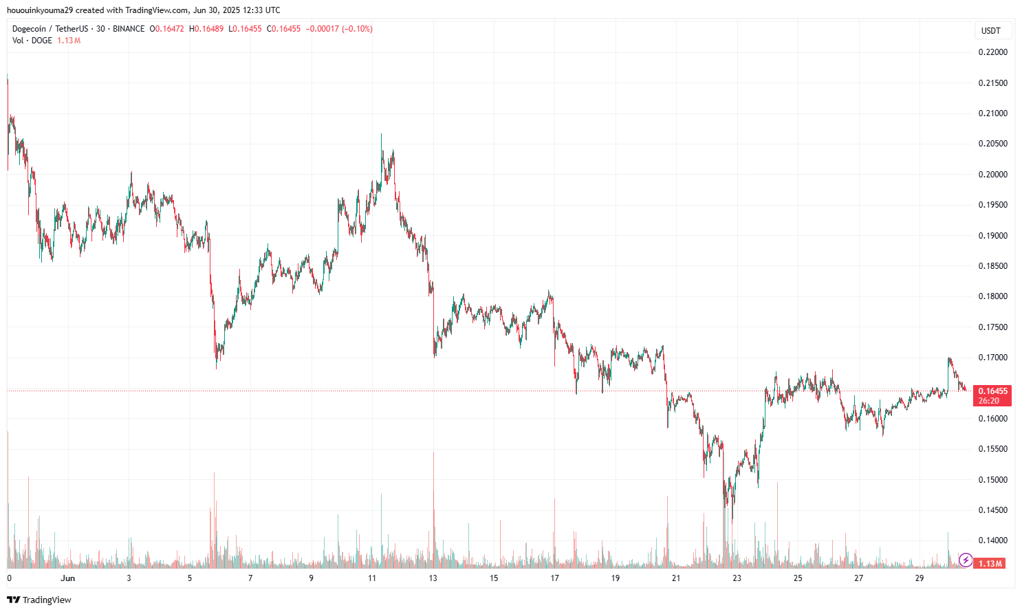 В выходных Dogecoin коснулся отметок в размере 0,170 доллара, но Memecoin увидел, как отстранился менее 0,165 долл. США, чтобы начать неделю.