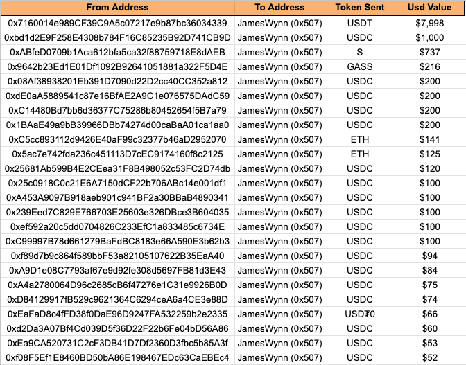 По крайней мере, 24 пользователя блокчейна отправили стаблеки по адресу криптовалюты Wynn, причем наибольшее пожертвование почти достигло 8000 долларов, согласно данным, составленным псевдонимным сынкой блокчейна «изящной».