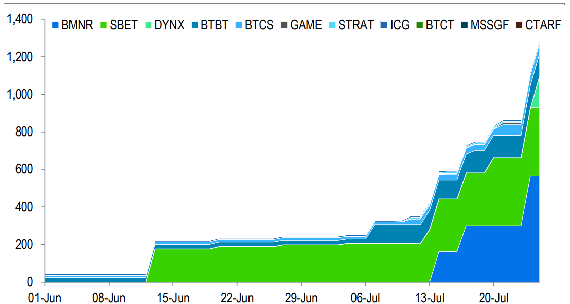 Связанный: Корпоративная криптовалюта казначейские холдинги лучшие 100 млрд. Долл. США в качестве эфирных покупок ускоряются