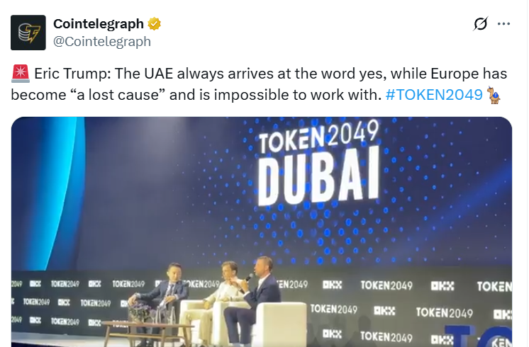 MGX будет использовать StableCoin USD1 для инвестиций в 2 миллиарда долларов в бирж Binance, объявил Эрика Трампа, сына президента США и исполнительного вице -президента организации Трампа во время панельной дискуссии на Token 2049 Dubai.