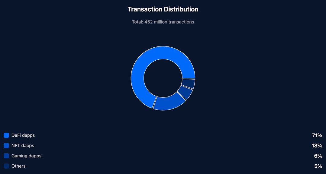 В то же время, он отслеживал более 452 миллионов транзакций, связанных с DAPP на Ethereum, а Defi Lead, NFTS в втором месте и Gaming завершает тройку лучших.