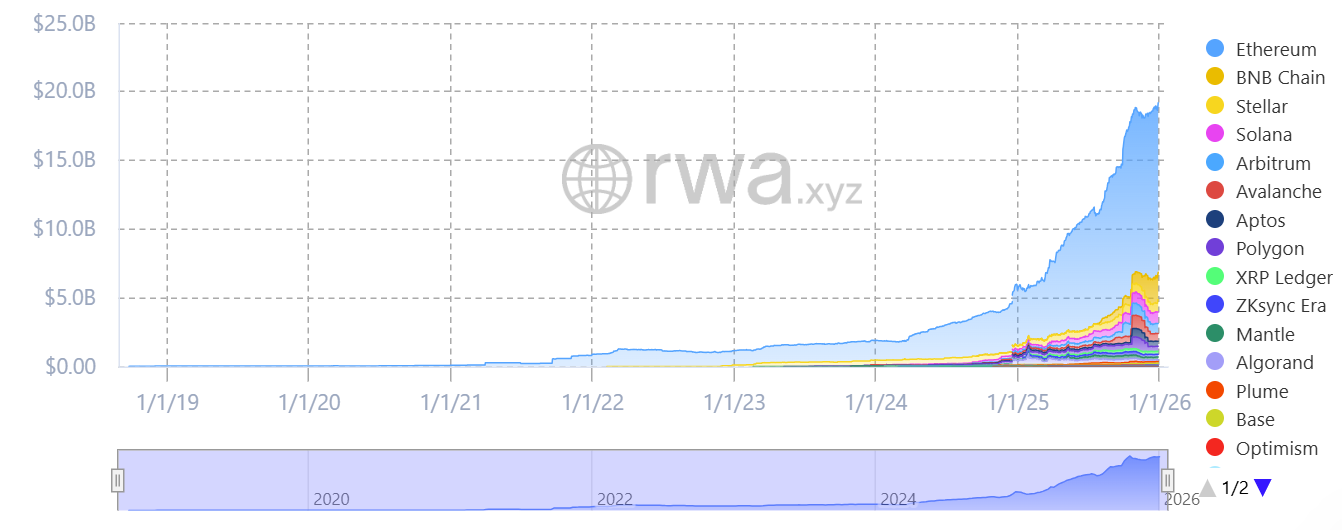 Ethereum остается доминирующей сетью для токенизации RWA, захватывая наибольшую долю рыночной капитализации RWA в сети.