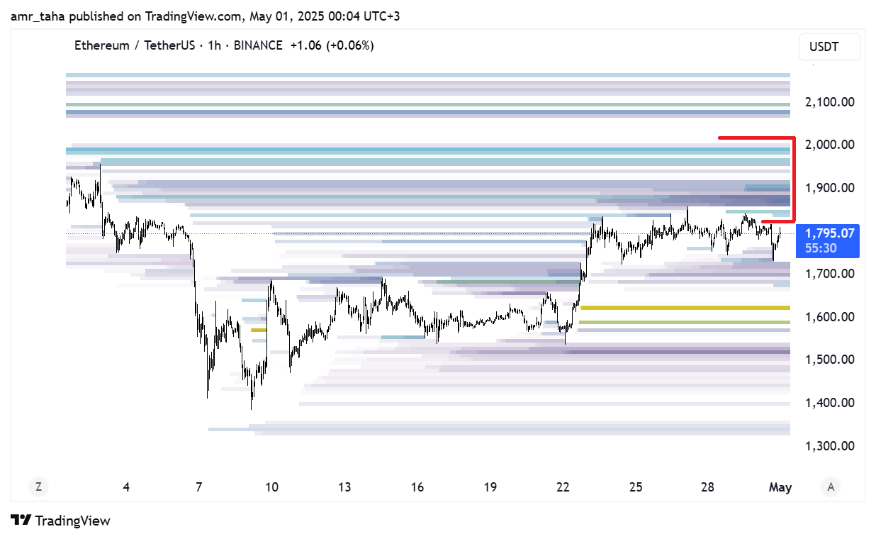 Благодаря текущей цене ETH и снижению сопротивления на стороне продажи, диапазон от 1900 до 2000 долларов становится все чаще.