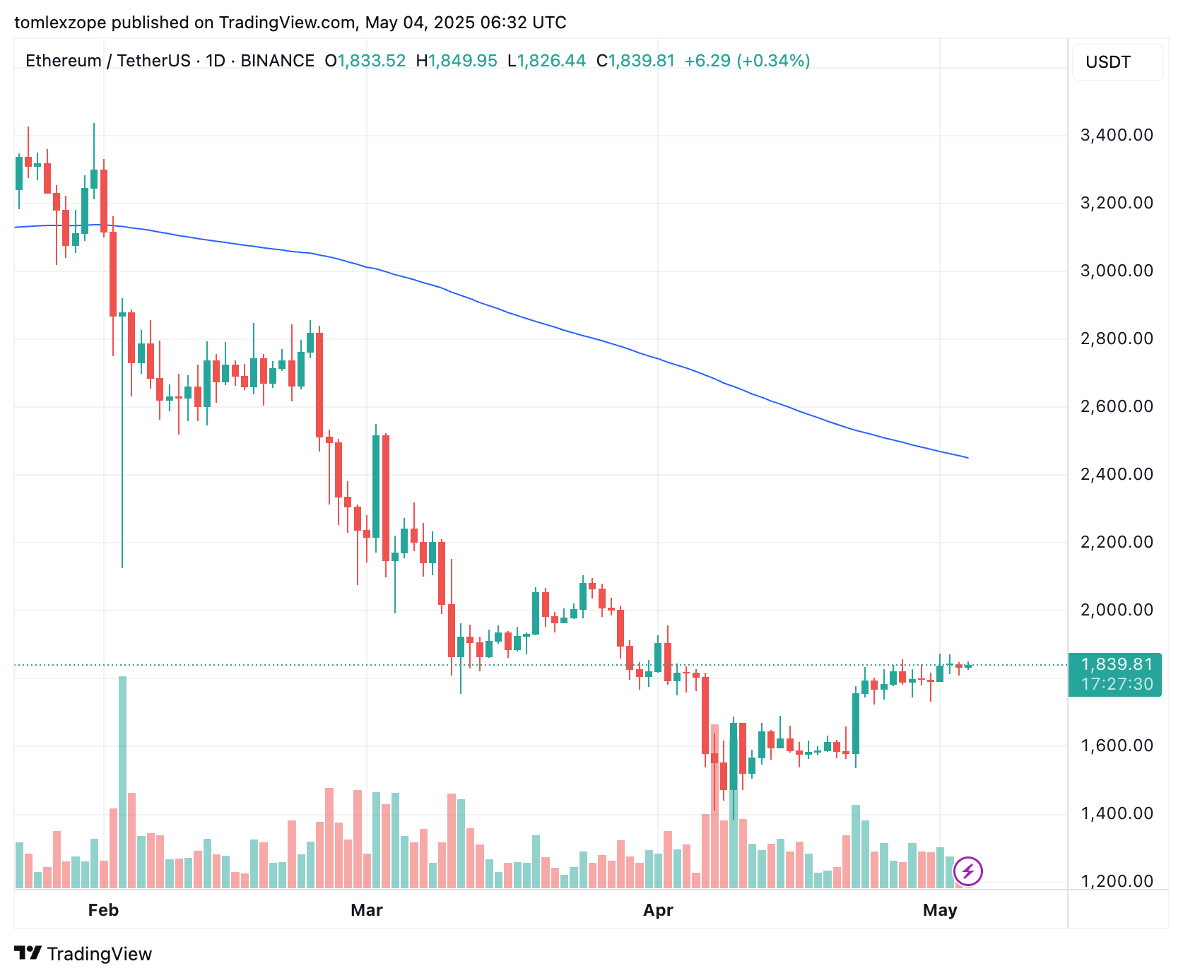 Быстрый взрыв бычьего импульса на рынке криптовалют в последние недели апреля позволил, чтобы цена Ethereum была закрыта на месяц выше 1800 долларов. Тем не менее, Altcoin не закончил месяц в прибыли, сделав апрель четвертый месяц подряд с негативной эффективностью. Согласно последним данным о цепочке, цена Ethereum, по-видимому, сидит выше важнейшего уровня поддержки, который может определить траекторию альткойна в течение следующих нескольких недель.