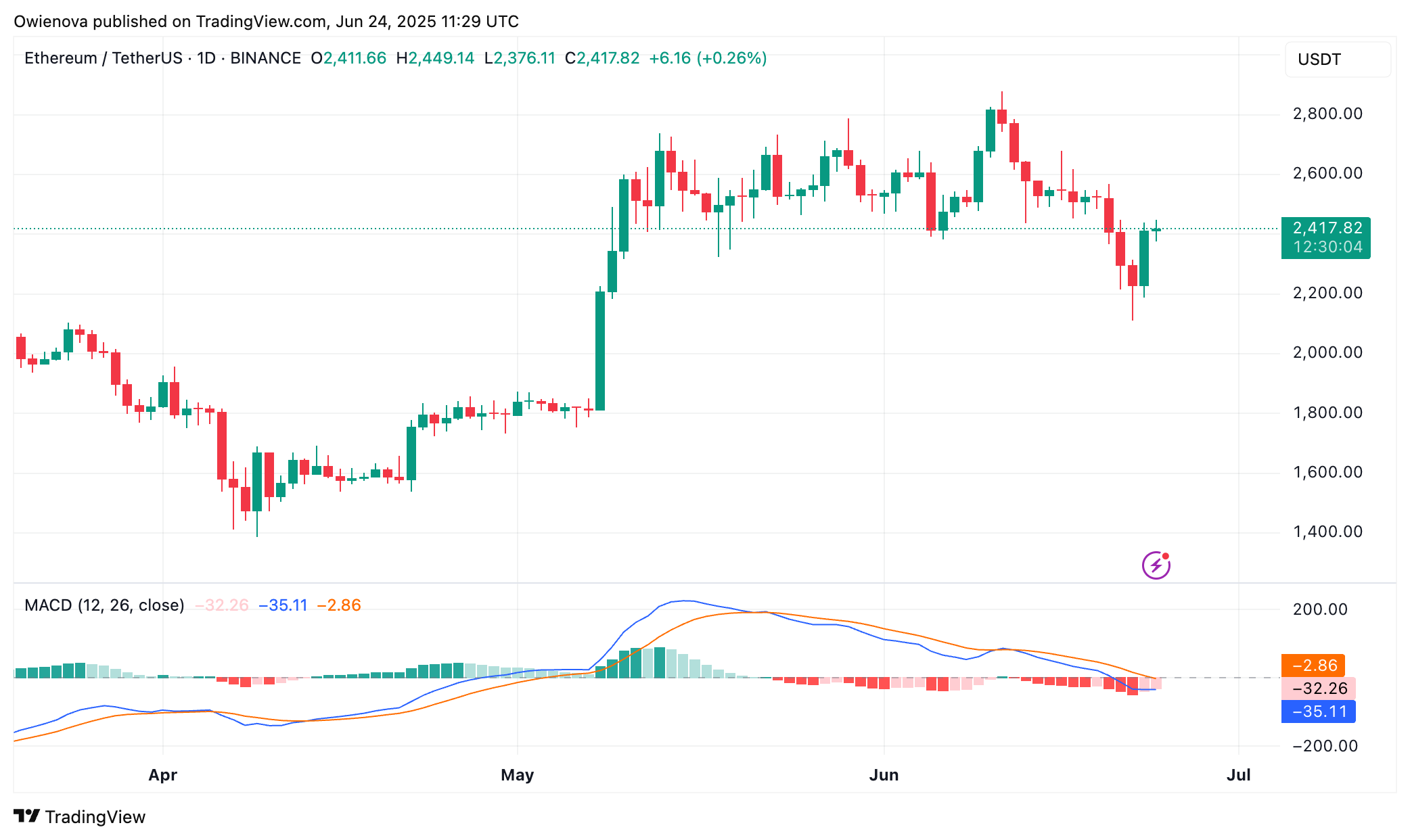 ETH Trading на уровне $2417 на 1D -диаграмме |Источник: EthusDT на TradingView.com