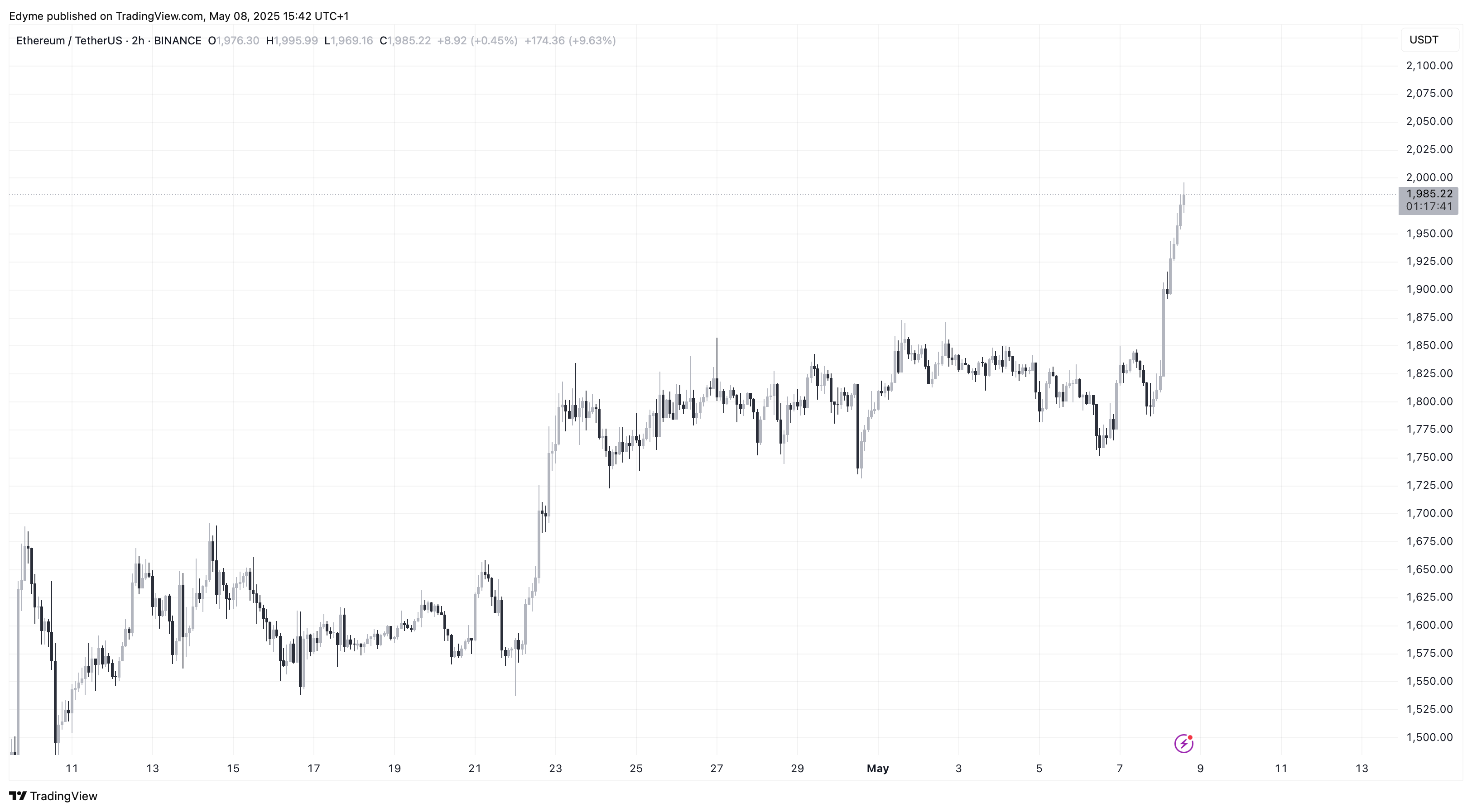 Эта цена движется вверх на 2-часовой графике. Источник: ETH/USDT на TradingView.com