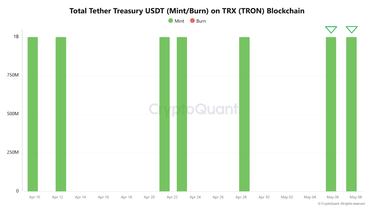 Таха также подчеркнула, что 7 мая Казначейство Дело не превысило 1 миллиард долларов в USDT на блокчейне Tron. Такие события часто предшествуют развертыванию капитала на рынке криптовалют, особенно из институциональных или безрецептурных (OTC).