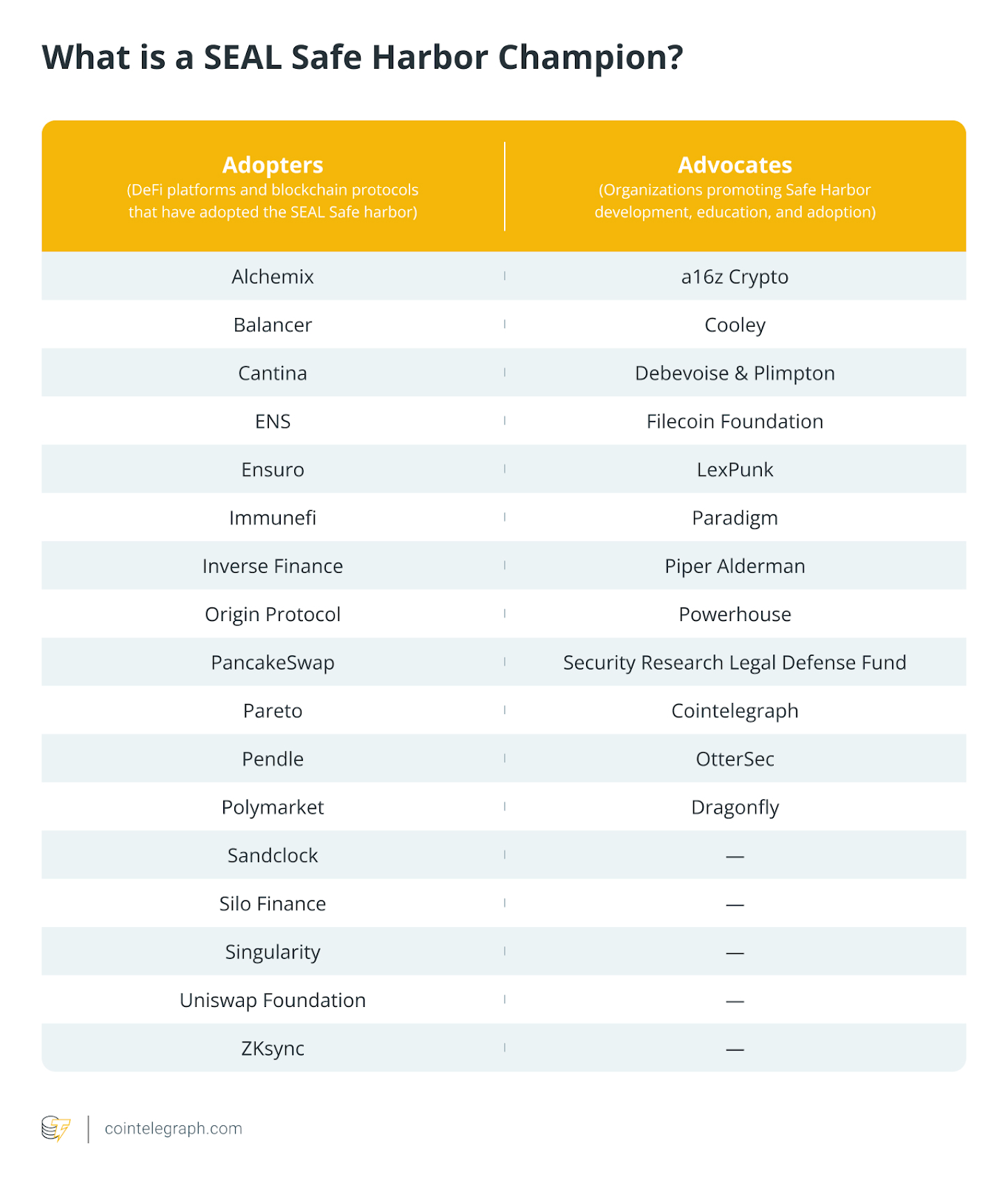 Чтобы принять фреймворк Safe Harbor, протоколы криптовалюты должны присоединиться к списку ожидания Seal. В случае одобрения они получат пошаговое руководство о том, как соблюдать структуру.