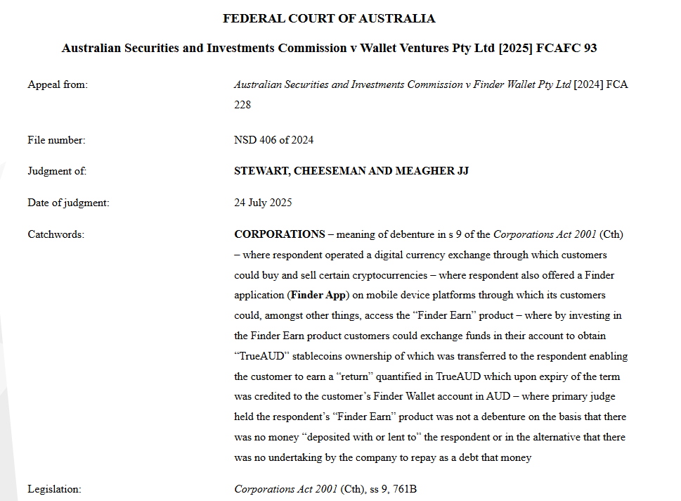 По словам Finder, дело ознаменовалось в первом случае, когда юридическое определение долгового обеспечения было проверено в австралийском суде, касающемся криптовалюты.