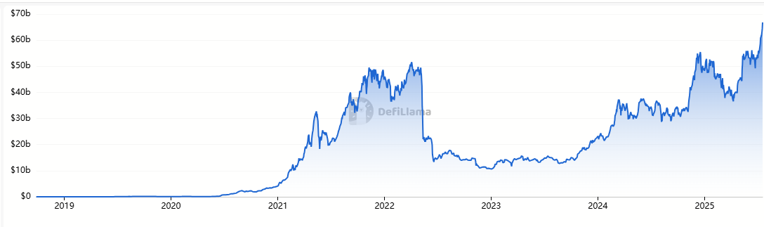 По словам Defillama Data, Defi Lending выросла до нового кумулятивного максимума за все время в 66,7 млрд долларов в пятницу.