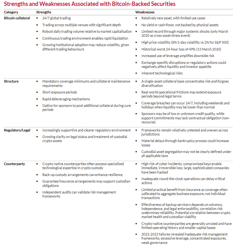 Агентство также сослалось на волну банкротств криптовалютных кредиторов во время спада 2022–2023 годов, вероятно, ссылаясь на BlockFi и Celsius, как на предостерегающие примеры того, как быстро модели, обеспеченные залогом, могут развалиться в периоды рыночного стресса.