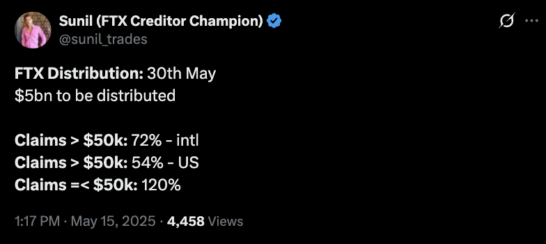 FTX Estate, чтобы начать распределять более 5 млрд долларов 30 мая.