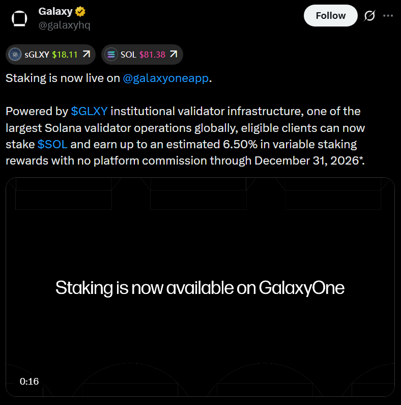 Чтобы привлечь первых пользователей, Galaxy отказывается от комиссий за стейкинг до конца года — временный стимул, который предполагает, что компания отдает приоритет привлечению пользователей, а не краткосрочным доходам от продукта.