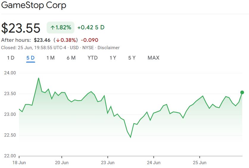 На торговой сессии в понедельник после его подачи данные Google Finance Data показывают, что акции GameStop (GME) упали с цены открытия в 23,03 долл. США до минимума в 22,45 долл. США, что составляет 2,5%.