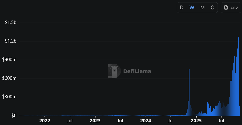 Объем торгов на платформе прогнозов «Калши» почти каждую неделю фиксирует новые максимумы с середины октября: последние 1,2 миллиарда долларов за 27 октября и 2 ноября превысили предыдущий рекорд в почти 1,01 миллиарда долларов неделей ранее.