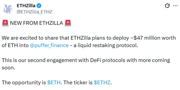 Рудисилл сказал, что Эцилла не имеет в виду определенное число, но хочет приобрести «как можно больше эфира», и поместить ее на «работу в различных протоколах L2», чтобы генерировать «значительно более высокую доходность», чем обычная стадия.