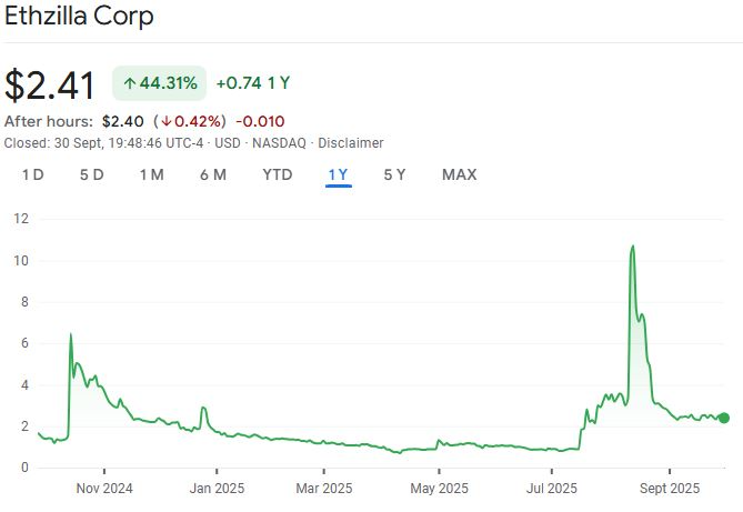 Ethzilla является восьмой по величине казначейской компанией Ether (ETH) из 69 перечисленных и имеет более 102 000 токенов.