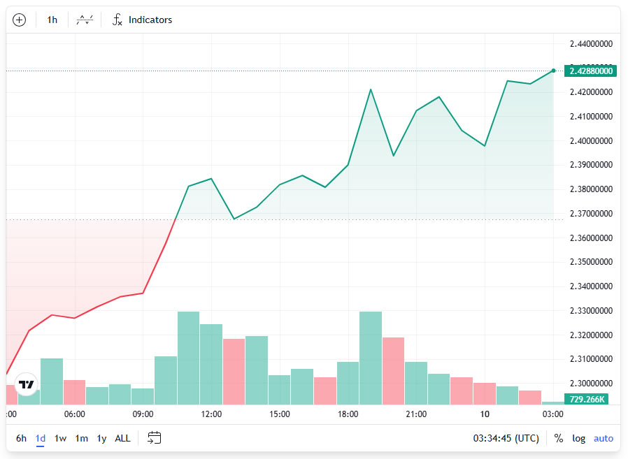 С понедельника с понедельника с понедельника с понедельника с понедельника с понедельника с понедельника с понедельника с понедельника выросла на 7% и торгуется на 2,42 долл. США, а на момент написания-самая высокая цена за семь недель.