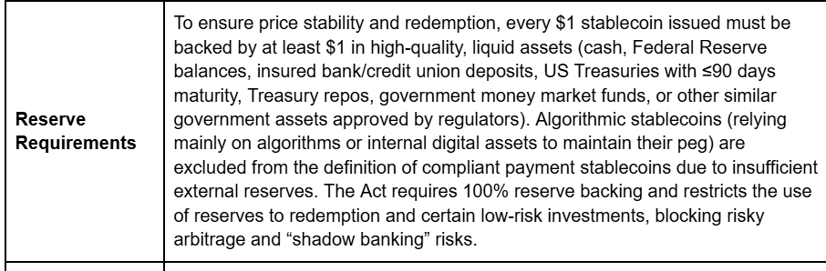 Эмитентам StableCoin также может быть запрещено использовать резерв для «чего-либо, кроме выкупа и некоторых безопасных инвестиций», включая инструменты с низким уровнем риска, такие как казначейские репо, для защиты от «теневого банковского» рисков.