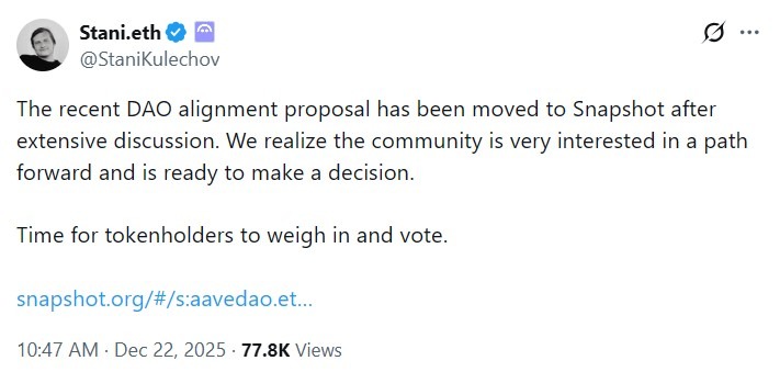 Основатель Aave Стани Кулехов заявил, что сообщество заинтересовано в принятом решении, и объявил, что предложение вынесено на голосование.