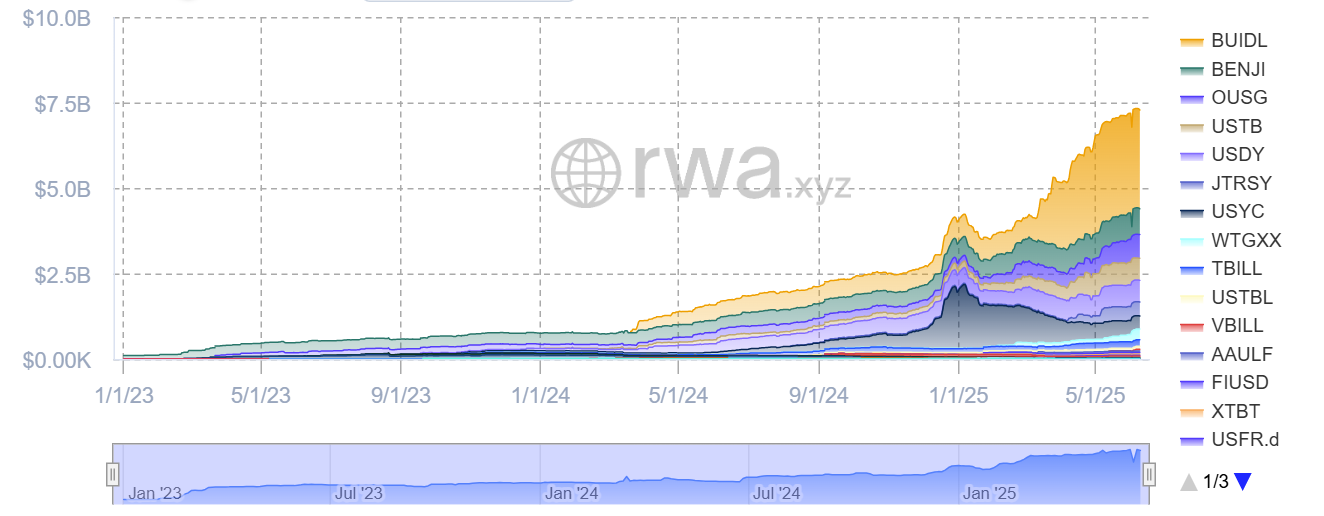 Токенизированные сокровища США собрали более 7 миллиардов долларов. Источник: rwa.xyz
