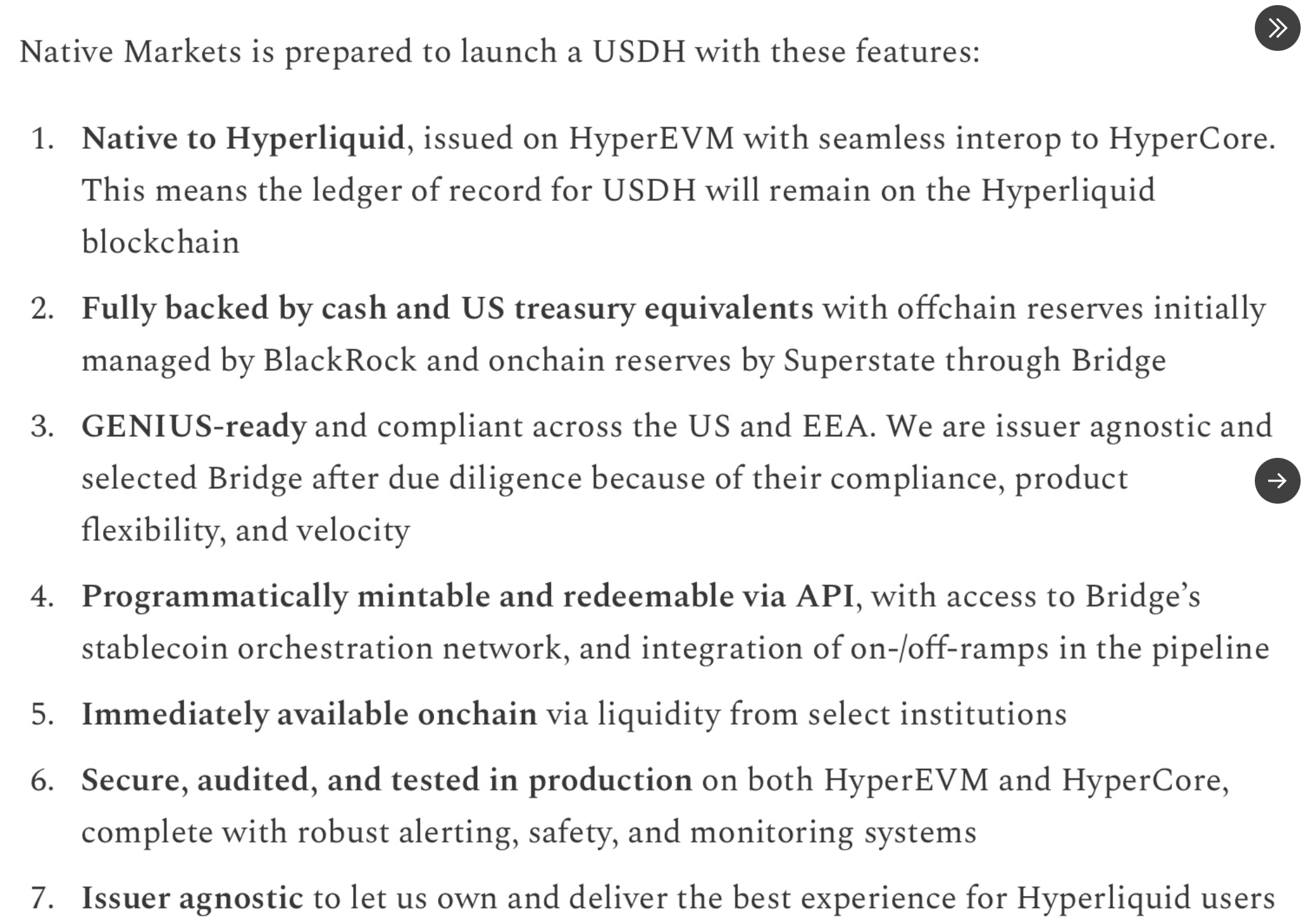 Вскоре после этого нативные рынки представили заявку, взяв на себя обязательство выпустить USDH на HyperevM и разделить доход резервного расторжения между выкупами в виде шумиха и развитием финансирования экосистемы.