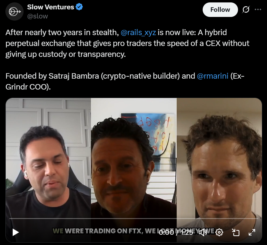 Медленные предприятия описали Rails как «гибридный вечный обмен, который дает профессиональным трейдерам скорость CEX, не отказываясь от опеки».