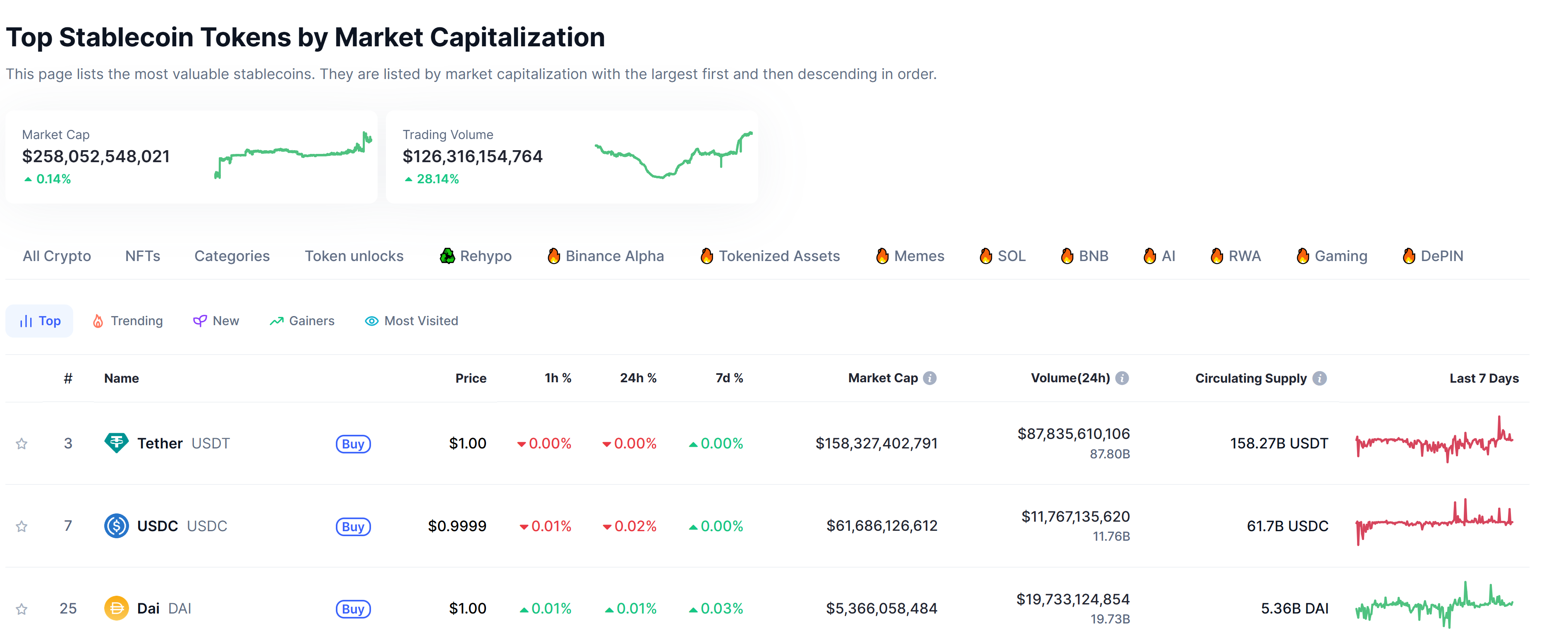 Лучшие стаблеки от рыночной капитализации. Источник: Coinmarketcap
