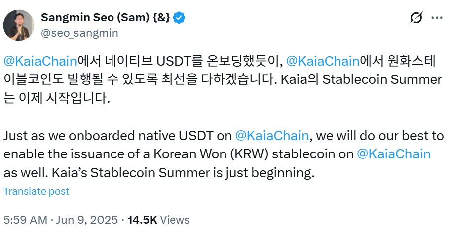 Блокчейн Layer-1 Kaia пообещал запустить южнокорейский Won Stablecoin после инаугурации президента Ли Чже-Мюнга 4 июня.