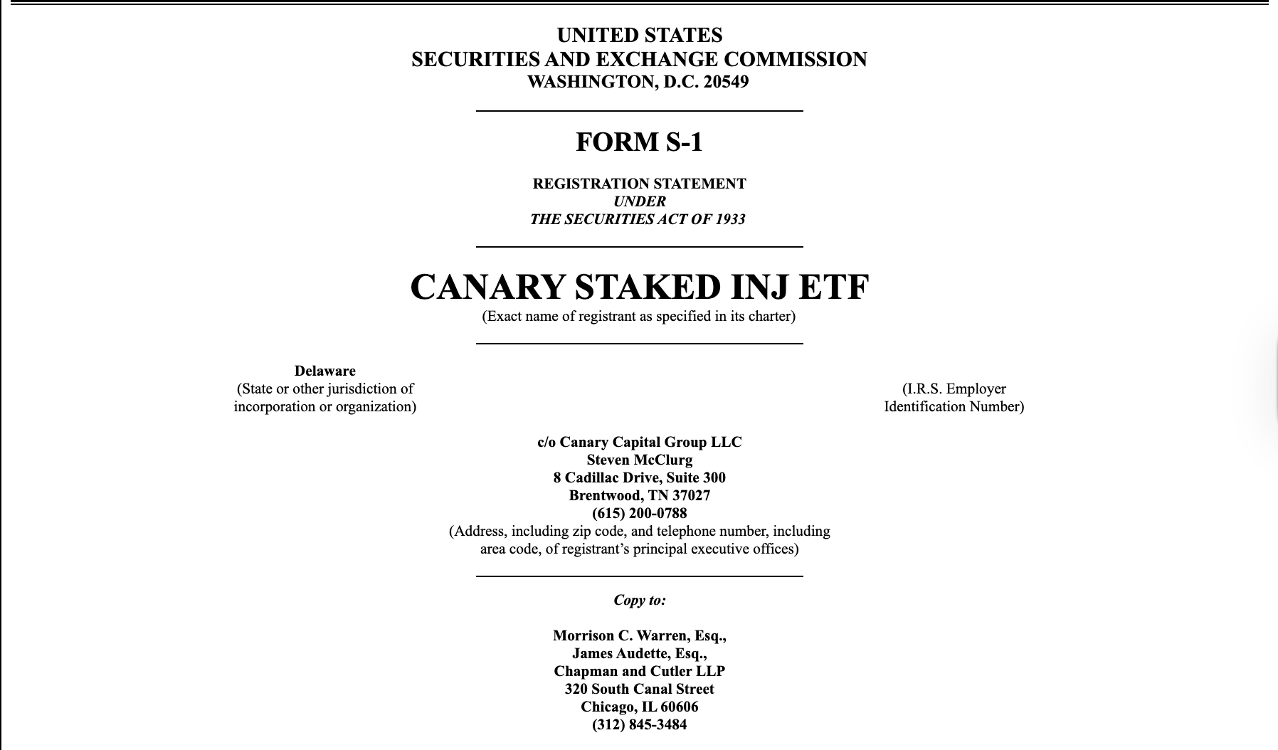 Инвестиционная компания Canary Capital подала заявку на S-1 для обменного фонда (ENC), проводящегося (ETF), в Комиссию по ценным бумагам и биржам Соединенных Штатов в четверг.