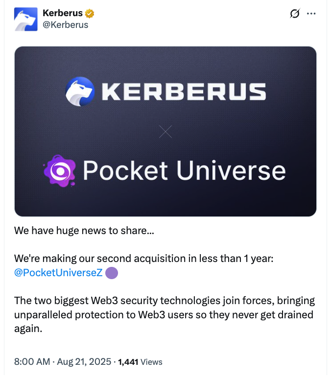 Платформа безопасности криптовалюты Kerberus приобрела Pocket Universe, популярную предотвращение мошенничества и расширение браузера, для создания выделенного антивируса для крипто.