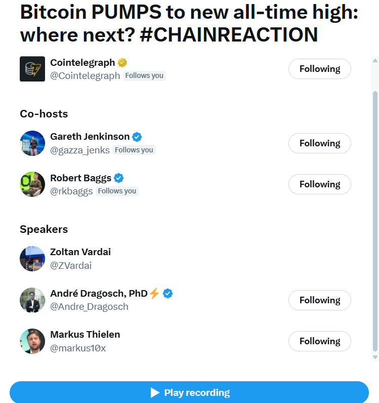 Связанный: Биткоин достигает новой рекордной максимума в 109 тысяч долларов США, так как напряженность в торговой войне облегчается