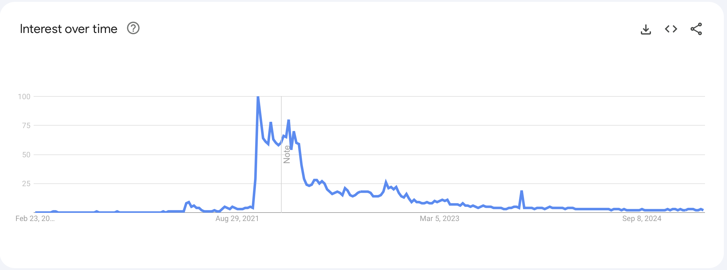Шумиха, окружающая метаверс, ослабляет с 2021 года, год, когда Марк Цукерберг изменил материнскую компанию Facebook на Meta. Взгляд на Google Trends, в которых анализируется интерес, основываясь на том, сколько раз был проведен термин, показывает, что термин «Metaverse» видел пик в период между 24 по 30 октября 2021 года и с тех пор отключен.