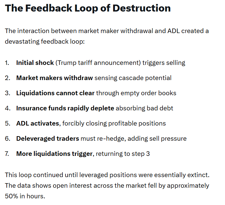 Рекордная ликвидация рынка криптовалют в пятницу на сумму 19 миллиардов долларов разделила трейдеров: некоторые обвиняют маркет-мейкеров в скоординированной распродаже, в то время как аналитики указывают на более естественный цикл сокращения доли заемных средств.