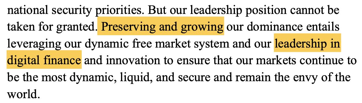 Однако есть один раздел документа, в котором говорится, что Трамп хочет сохранить и усилить «доминирование Америки в финансовом секторе», используя «лидерство страны в области цифровых финансов и инноваций» для обеспечения ликвидности и безопасности рынка, что может быть намеком на криптовалюту.