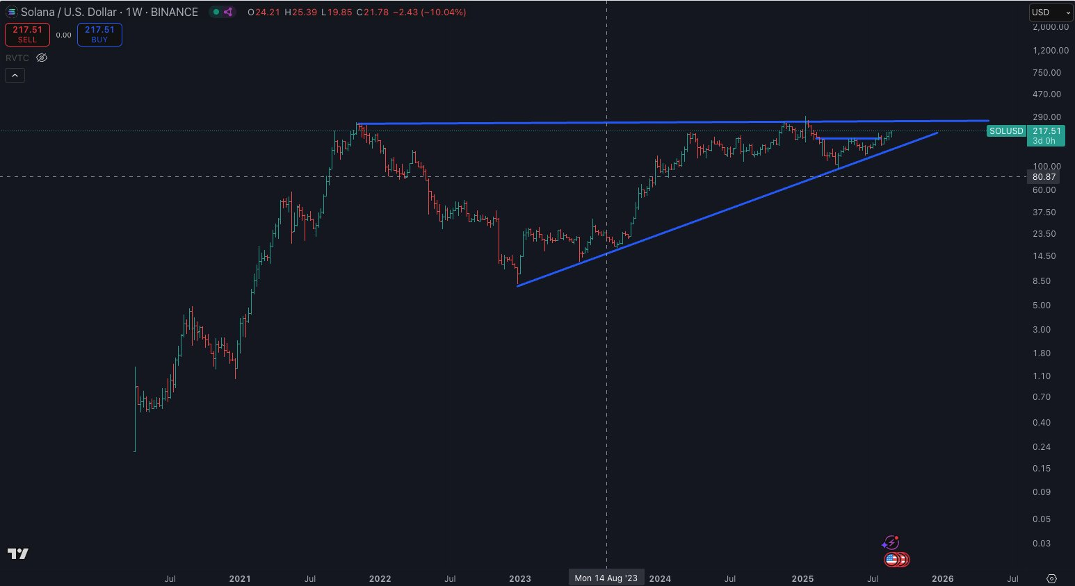 Некоторые из ведущих альткойнов на рынке криптовалют в настоящее время готовятся оставить «зал ожидания» вперед для окончательной параболической стадии митинга, причем токен Solana (Solan) является «рядом с уходом», – написал Пал, поделившись приведенной ниже диаграммой.