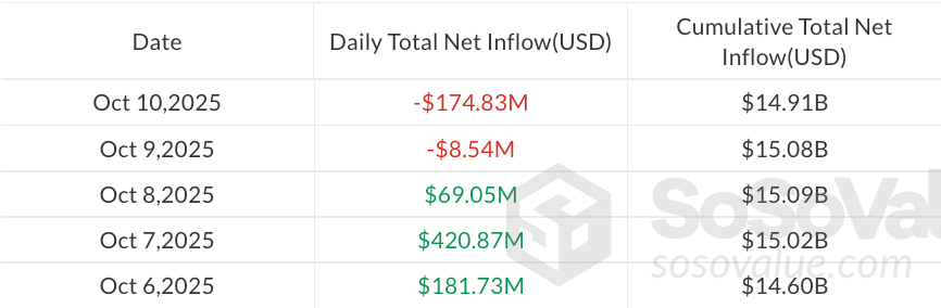 «Пятница не вызвала особой реакции: отток средств составил лишь 159 миллионов долларов», — написал руководитель исследовательского отдела CoinShares Джеймс Баттерфилл, подчеркнув устойчивость криптовалютных фондов к рыночной панике на фоне пятничной распродажи и ликвидаций на 20 миллиардов долларов.