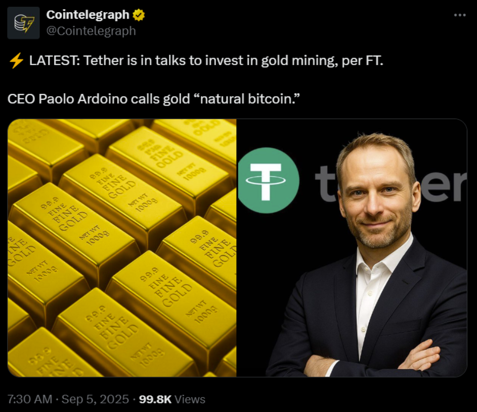 Tether уже завоевал заметное присутствие на сырьевом рынке благодаря своему токенизированному золотому продукту Tether Gold, который завоевал популярность на фоне текущего бычьего рынка. Ардоино также подтвердил, что у компании имеется более 100 тонн физических слитков.